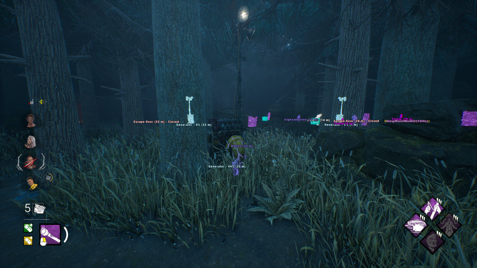 It includes advanced features like ESP for survivors and killers, aimbot,
